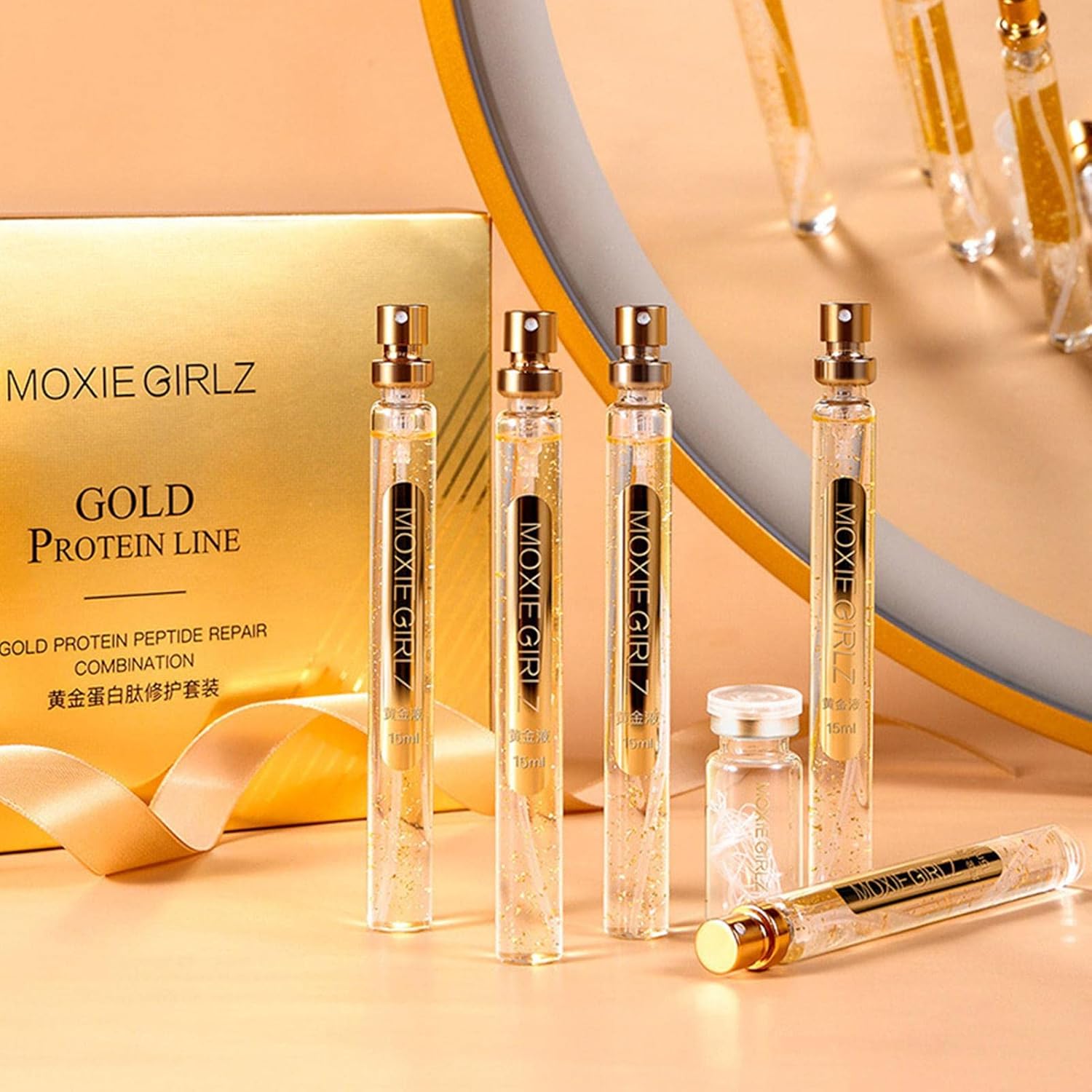 - Mantiene la elasticidad: con el tiempo la piel pierde elastina y colágeno, reduciendo su flexibilidad. Nuestro juego de línea de proteínas de esencia dorada proporciona una hidratación duradera para una piel más suave y de aspecto más joven.
