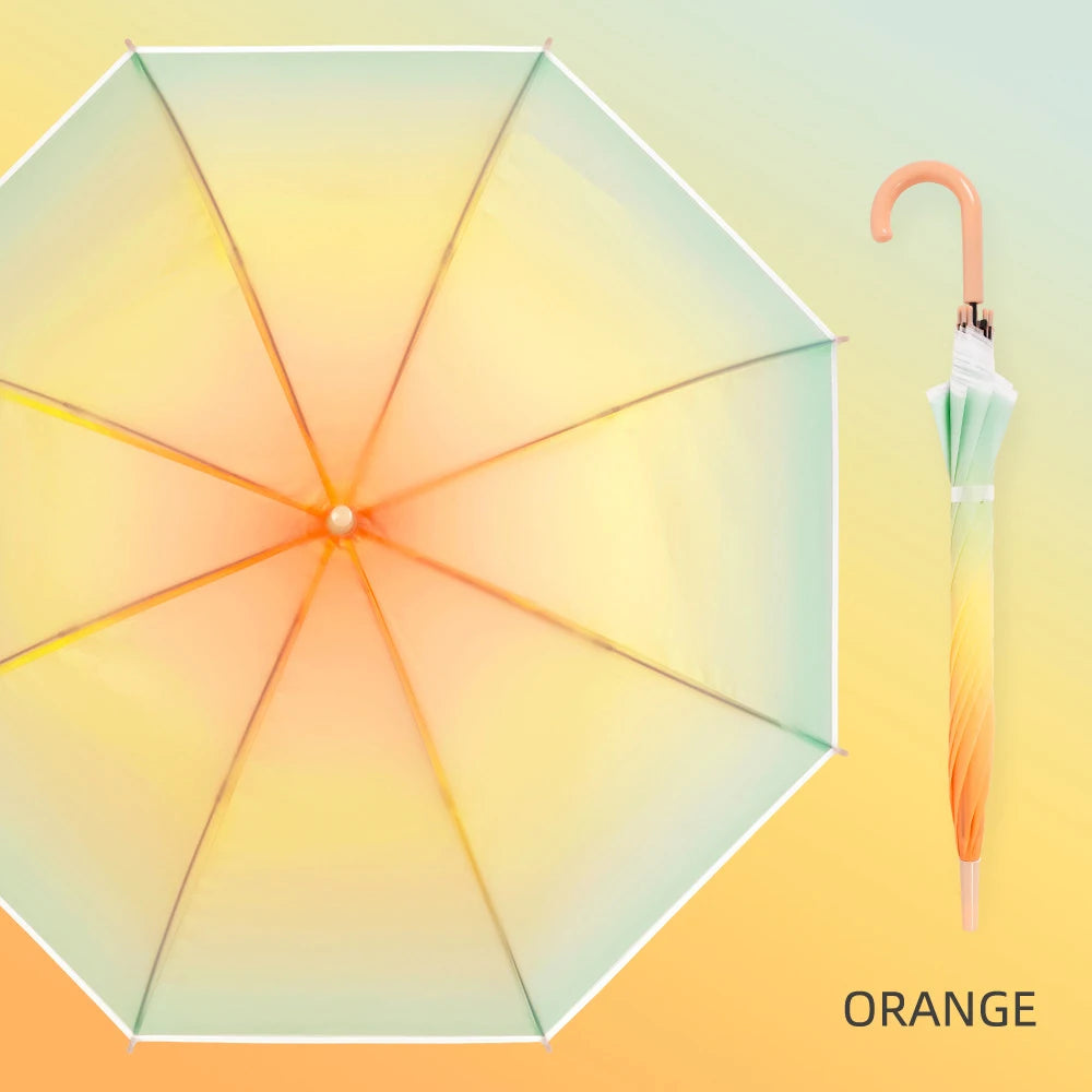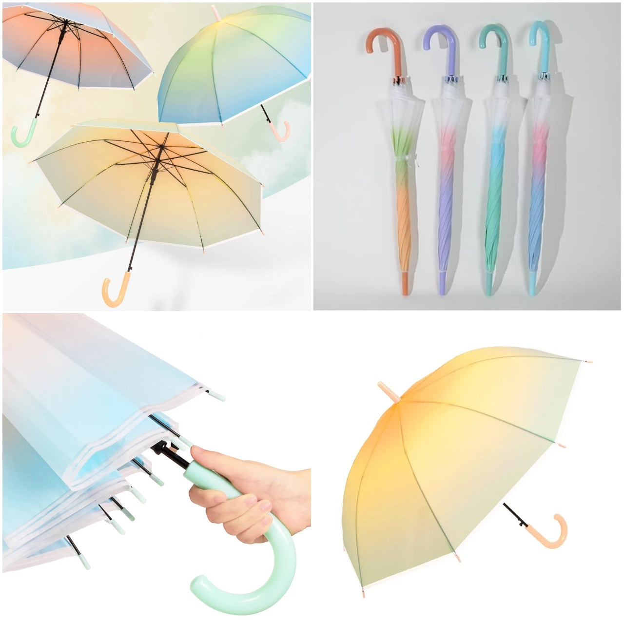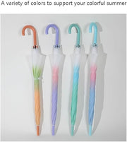 🌈 Paraguas Degradado Multicolor – Estilo Pastel con Mango Curvo