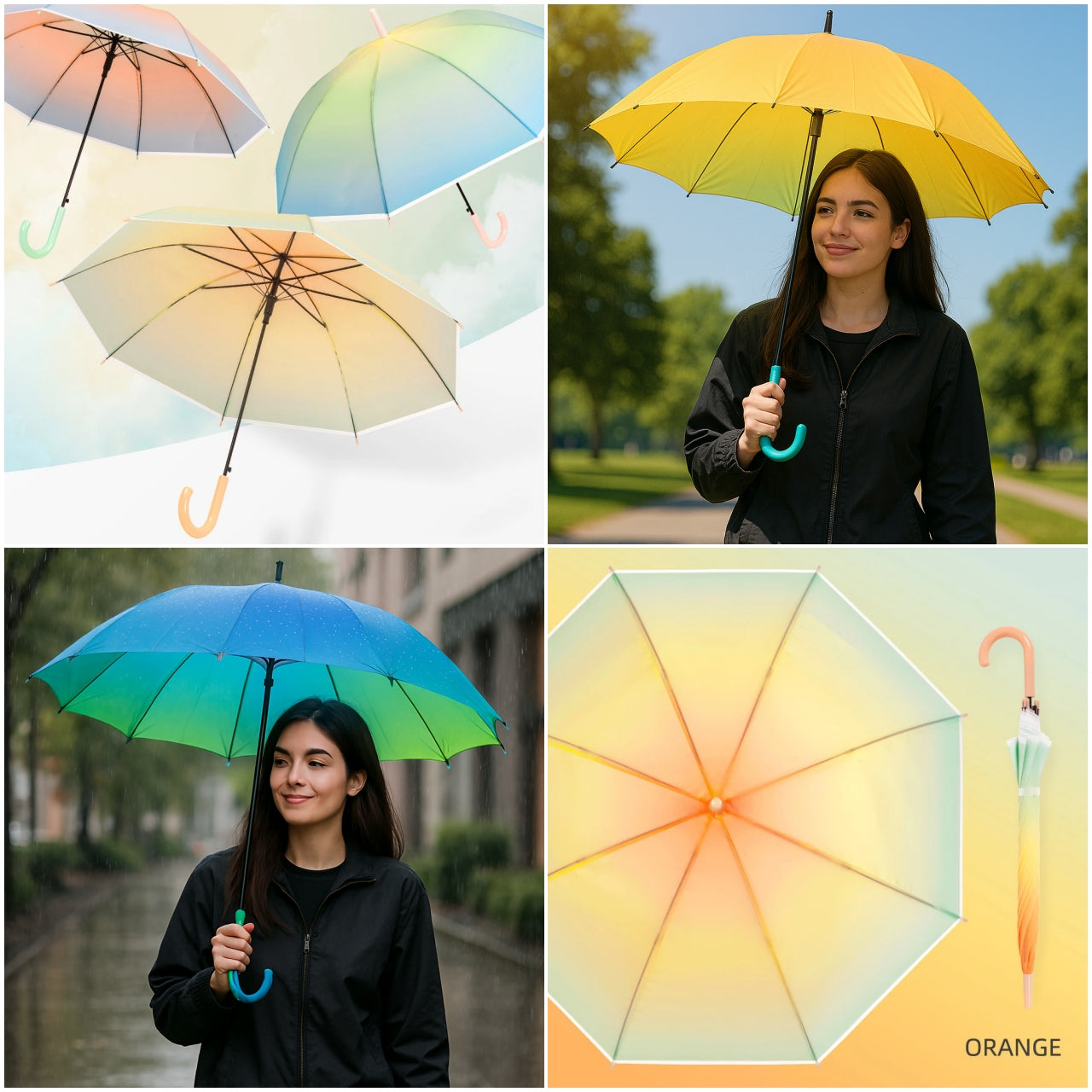 Diseño exclusivo: Sombrilla con efecto degradado en colores vibrantes como azul, verde, naranja y rosa pastel. 🎨