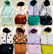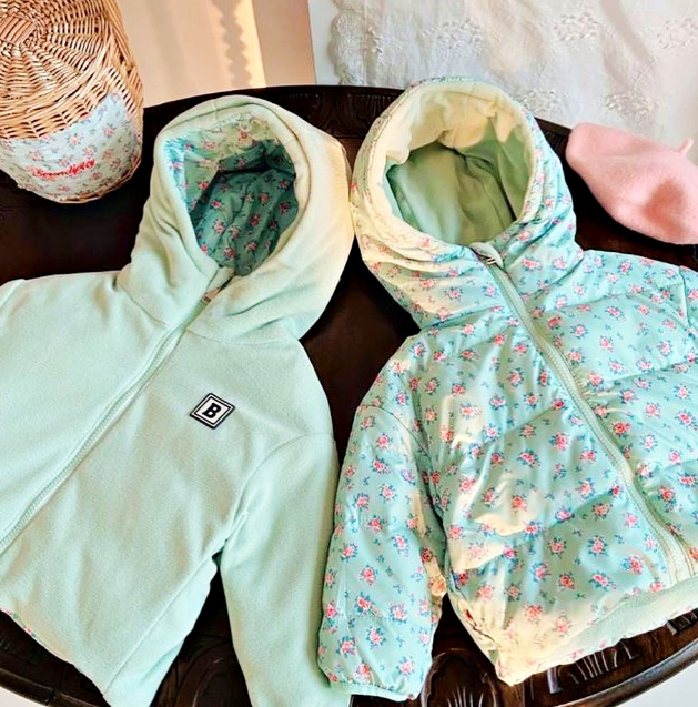 Chamarra doble vista para niñas y niños! Dos estilos en uno, súper suave y lista para el frío.