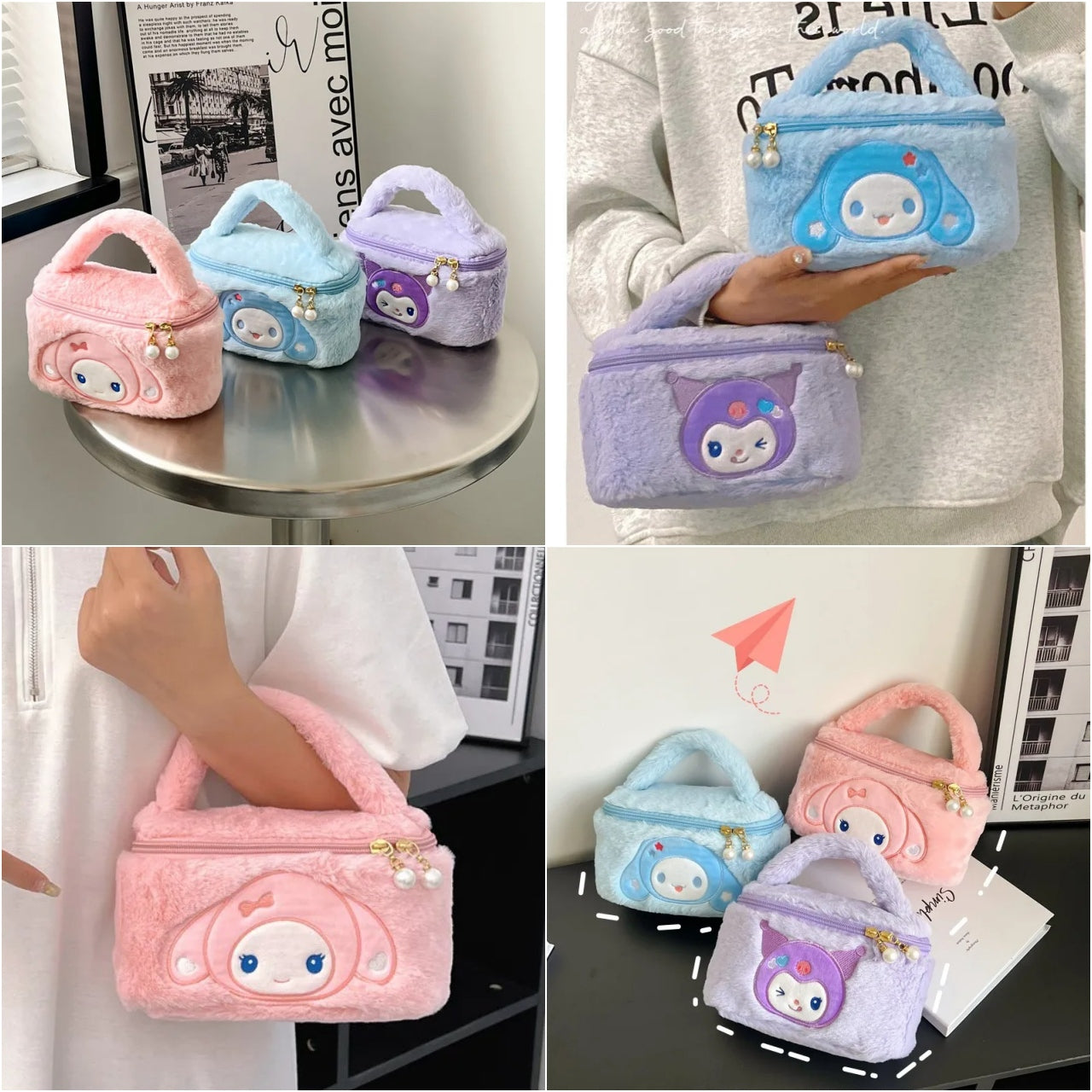 Estas encantadoras bolsitas de peluche son perfectas para guardar tus esenciales con estilo. Su diseño suave y colorido las convierte en el accesorio ideal para llevar a donde quieras, ya sea para salir, organizar tus cosméticos o simplemente lucir algo adorable.