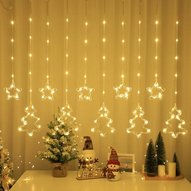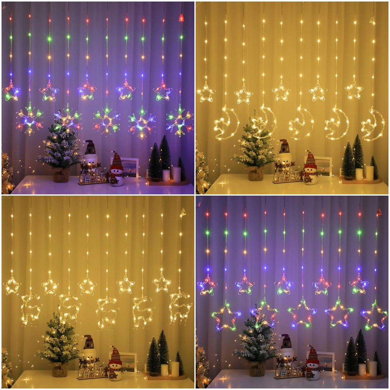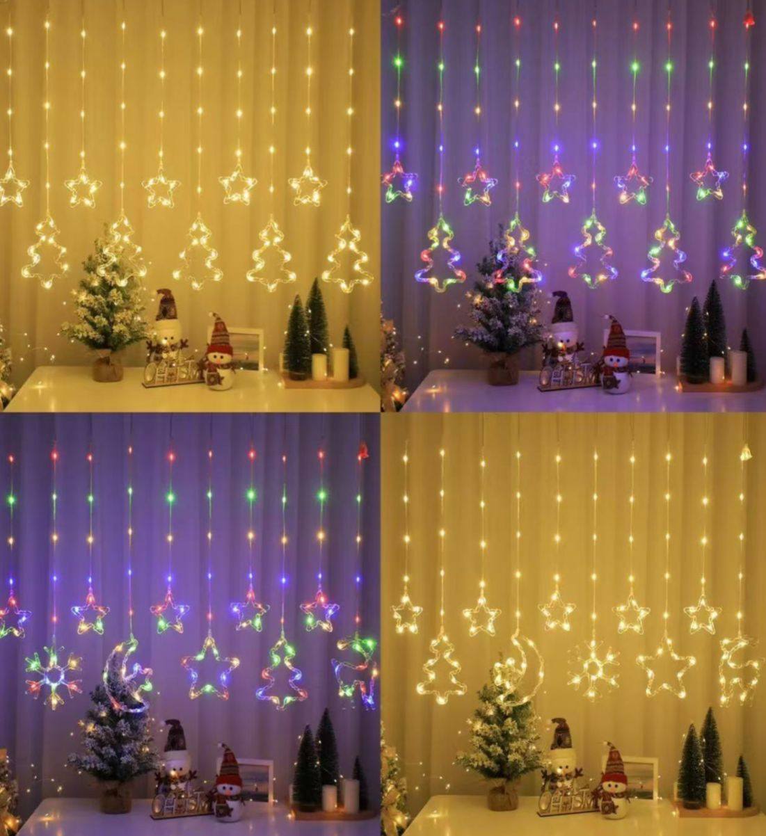 Luces de cortina de cuero LED mixtas3 m, 10 ganchos, con tapón de cola, en bolsa OPP