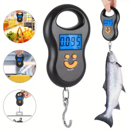 Mide con precisión cualquier objeto con esta báscula digital portátil con gancho, ideal para pesar maletas, ingredientes, frutas, pesca y más. Su diseño compacto y su pantalla digital de alta precisión hacen que sea una herramienta imprescindible para el hogar y viajes.