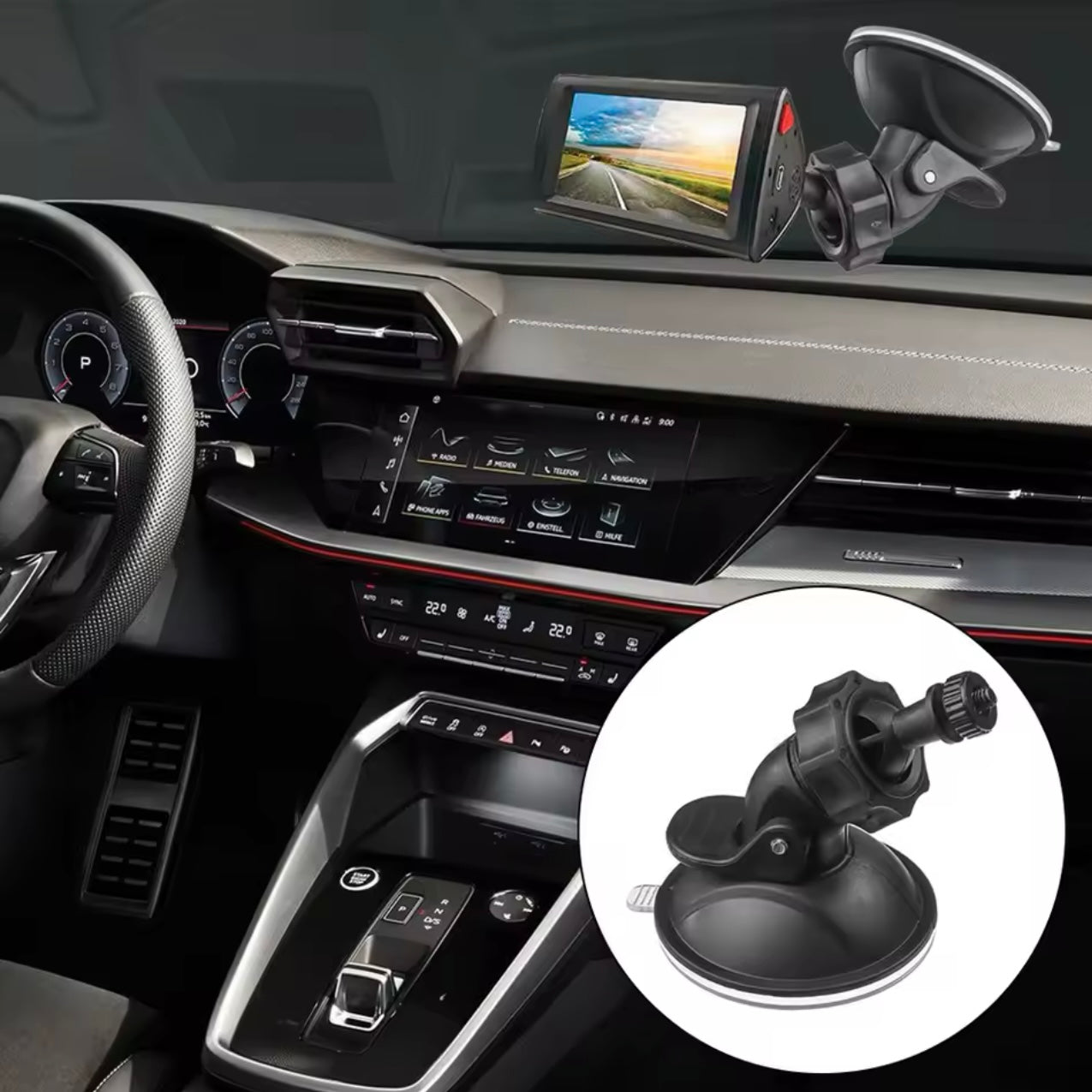 🔌 Fácil instalación: Se monta fácilmente en el parabrisas con su soporte de succión.