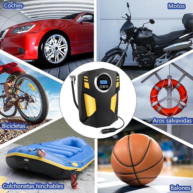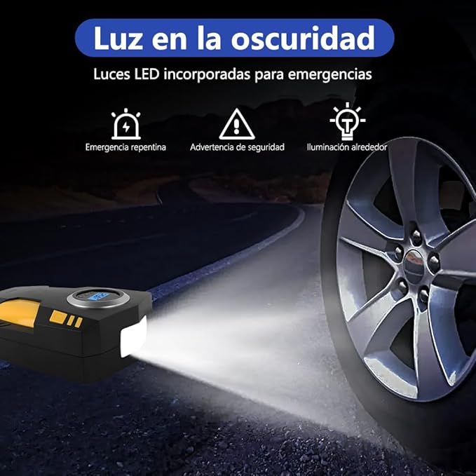 🚗 ¡Infla tus neumáticos y más en segundos! Con el Compresor de Aire Digital Portátil, nunca más te quedarás varado con una llanta desinflada. Diseñado con tacómetro digital, te permite ajustar la presión exacta con precisión. Ideal para autos, motos, bicicletas, balones y colchones inflables. Su pantalla LED y luz incorporada lo hacen perfecto para emergencias en la oscuridad.