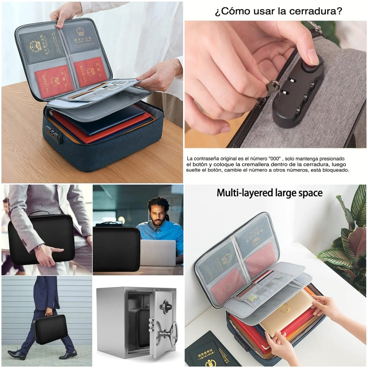 ¡Mantén tus documentos importantes protegidos y organizados con este maletín de seguridad! Ideal para pasaportes, contratos, dinero y más.
