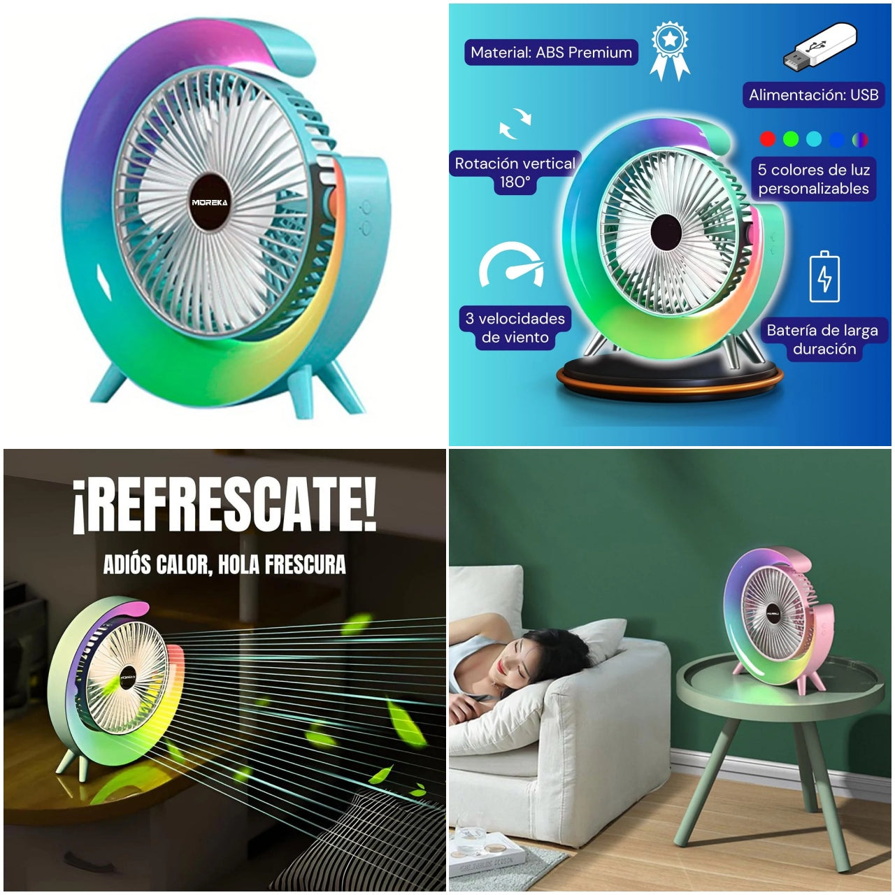 ¿Calor insoportable? ¡Dile adiós con el Ventilador Lámpara SF110 de MOREKA! 🌬✨ Un diseño futurista que combina un flujo de aire potente con iluminación LED personalizable. Perfecto para tu escritorio, dormitorio o cualquier espacio que necesite frescura y un toque de color. Su alimentación USB y batería de larga duración lo hacen súper práctico.