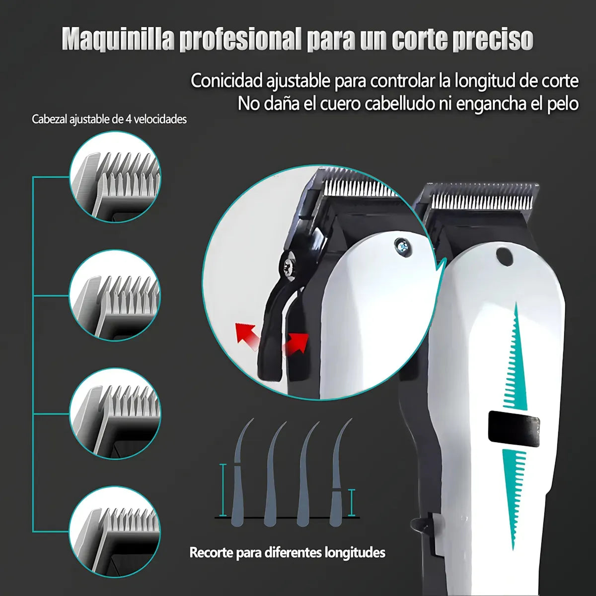 📏 Versatilidad de Corte: Incluye 4 peinetas intercambiables para diversas longitudes (3, 6, 9 y ), además de palanca de ajuste.