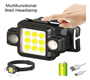 Linterna de Cabeza Recargable (Tipo Minero) que incluye una función magnética o a una Linterna de Trabajo (Work Light) con LED COB y base imantada.